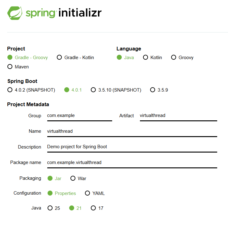 안녕하세요! 이번에는 Java 21+의 가상 스레드(Virtual Threads)를 Spring Boot에 적용해 고성능 서버를 만들어 보겠습니다. 가상 스레드는 기존 플랫폼 보다 동시성을 활용하여 성능에 이점이 존재합니다.