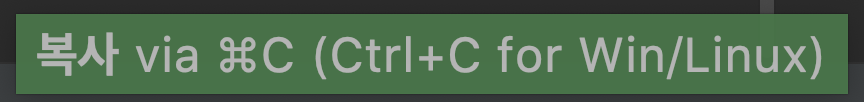 예를 들어 글자 복사인 Ctrl+C // Mac의 경우 Command + C를 이용하지 않고 마우스 오른쪽 키로 복사를 하게 되면 아래 작은 팝업과 함께 오른쪽에서 내가 사용하지 않은 단축키를 아래 사진과 같이 보여준다.
