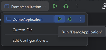 인텔리제이에서 오른쪽 위에 존재하는 실행버튼을 누르게 되면 서버가 실행됩니다.