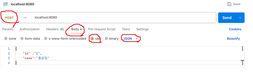 POST API의 경우 GET과 다르게 본문(Body)이라는 곳에 포함해서 보낼 수 있습니다. 이번 예제에서는 Body를 전달받아 처리하는 로직으로 구현해 보겠습니다.