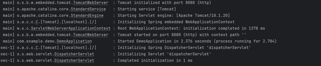 아래와 같이 Tomcat started on port 8080 (http) ~~ 로그가 뜬다면 성공입니다.
