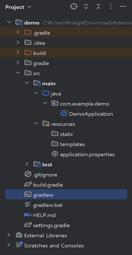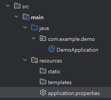 이 폴더는 애플리케이션에서 사용되는 모든 리소스 파일( html, js, css 등 )을 보관합니다. 여기에는 설정 파일(application.properties 또는 application.yml), XML 설정 파일 등이 포함될 수 있습니다. 이번 프로젝트에서는 application.properties를 사용하게 됩니다.