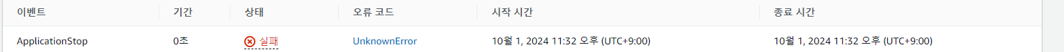 CodeDeploy는 친절하지 않게 오류 내용도 보여주지 않고... UnknownError만 딱 보여주고 상세를 눌러보면